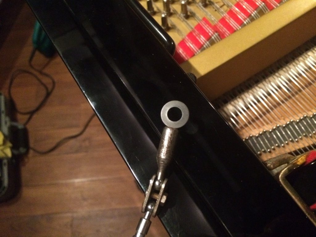 ピアノにはたくさんのネジが使われているので中には緩んで共鳴してしまうものもあります。だいたい鳴りやすいネジは決まっているのですが、特定するためにお客様に手伝って頂く場合もあります。