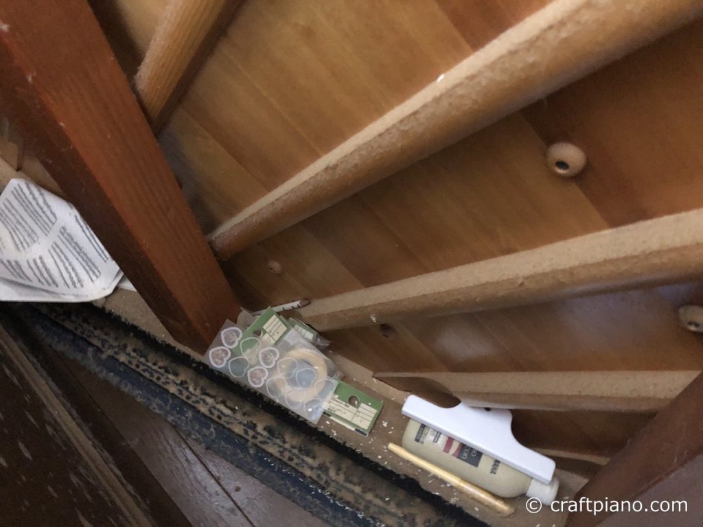 重いのでピアノを動かすのは大変ですが、少しゆすると下に落ちて収まる場合もあります。これまでも色々なものを拾いました。